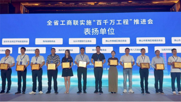 7月7日至8日,全省工商聯實施“百千萬工程”推進會在清遠召開。在推進會上,對在“百會萬企”行動中表現突出的50家商會和50家民營企業給予通報表揚。其中,河源市工商聯推薦的廣東省浙江臺州商會、廣州市龍川商會、深圳市東源商會、東瑞食品集團股份有限公司、廣東霸王花實業集團有限公司上榜,他們為凝聚民營經濟領域力量、助力縣鎮村高質量發展作出了積極貢獻。